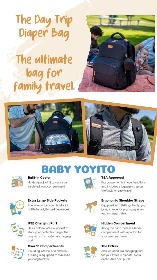 Kids are the greatest blessing—and sometimes the greatest challenge. Baby Yoyito creates functional baby products that take the stress out of parenting. From our best-selling Day Trip Diaper Bag Backpack with a built-in cooler to lightweight travel essentials, we’re here to make family time easier, wherever the day takes you.